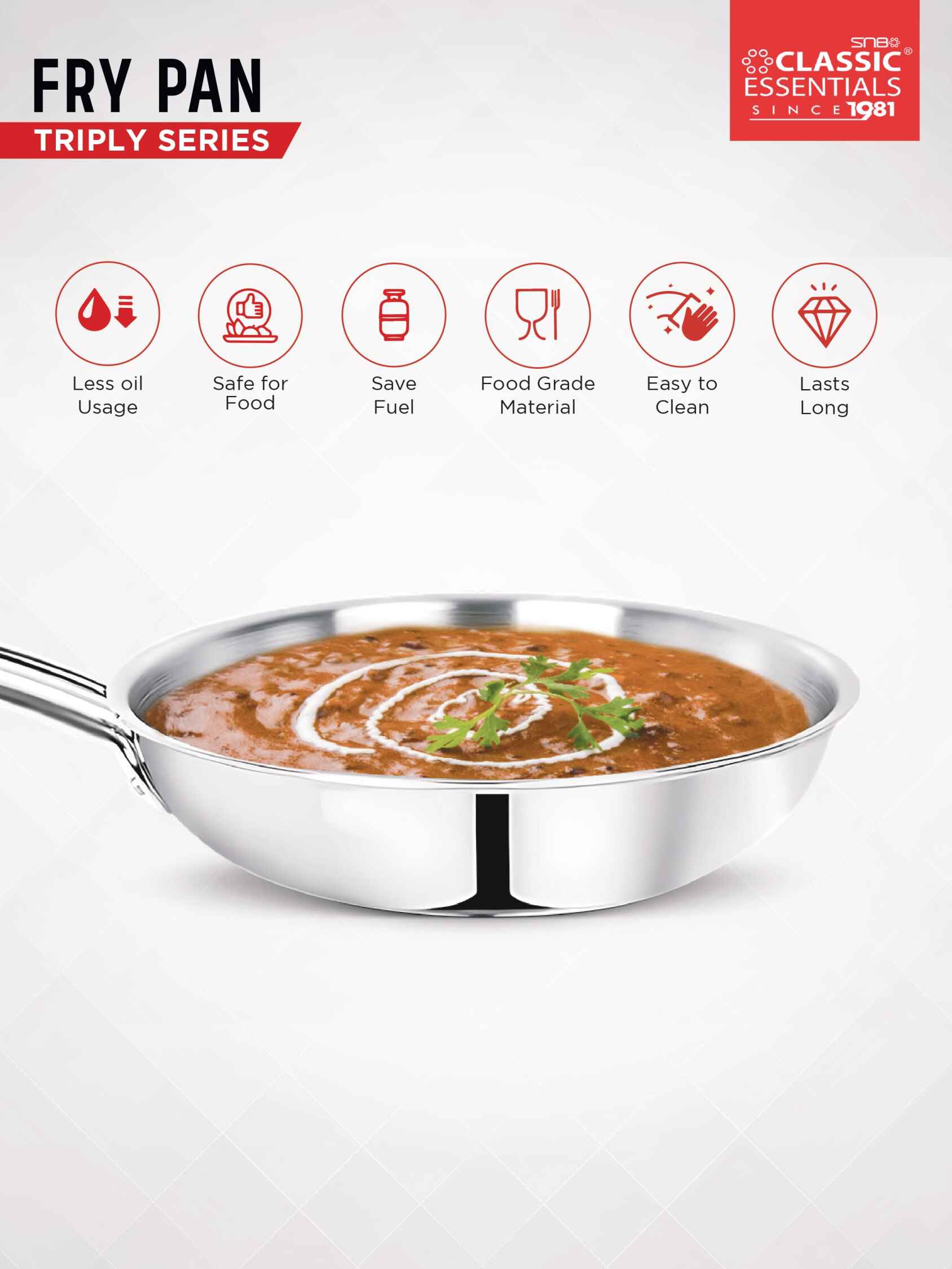For over four decades, Classic Essentials has been a symbol of innovation and trust in kitchenware. The Tri-Ply Series combines traditional craftsmanship with modern technology — ensuring professional cooking performance, effortless cleaning, and long-lasting shine.