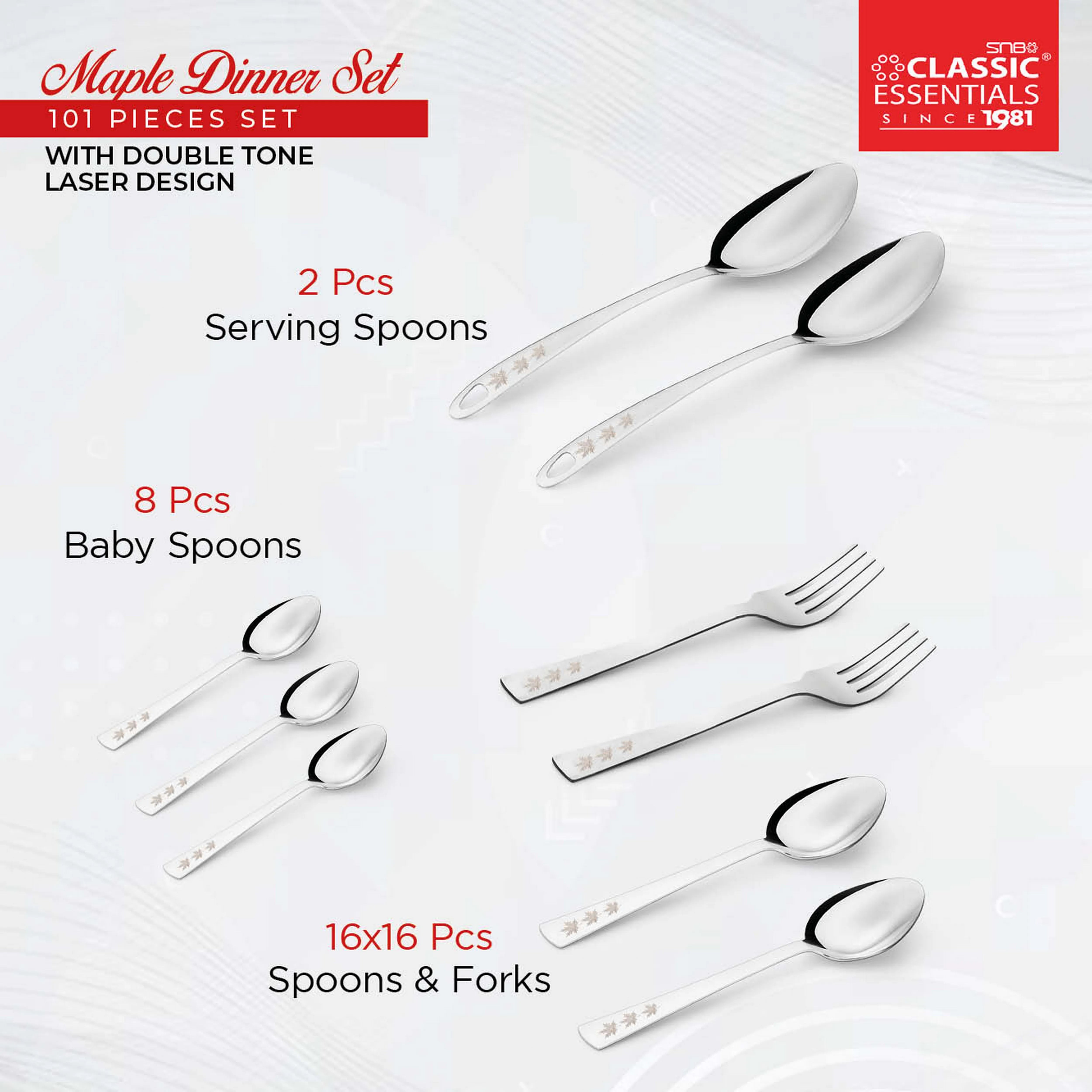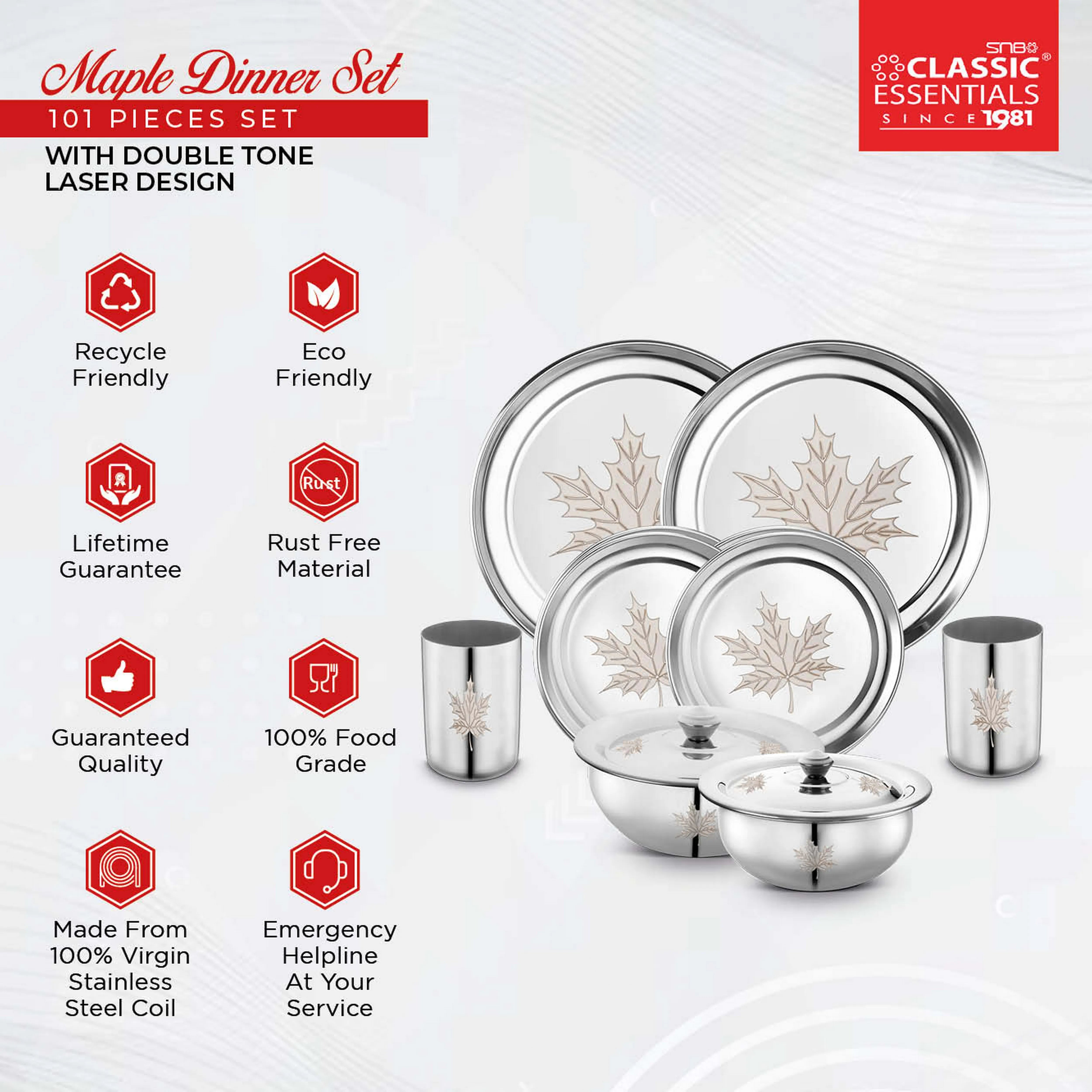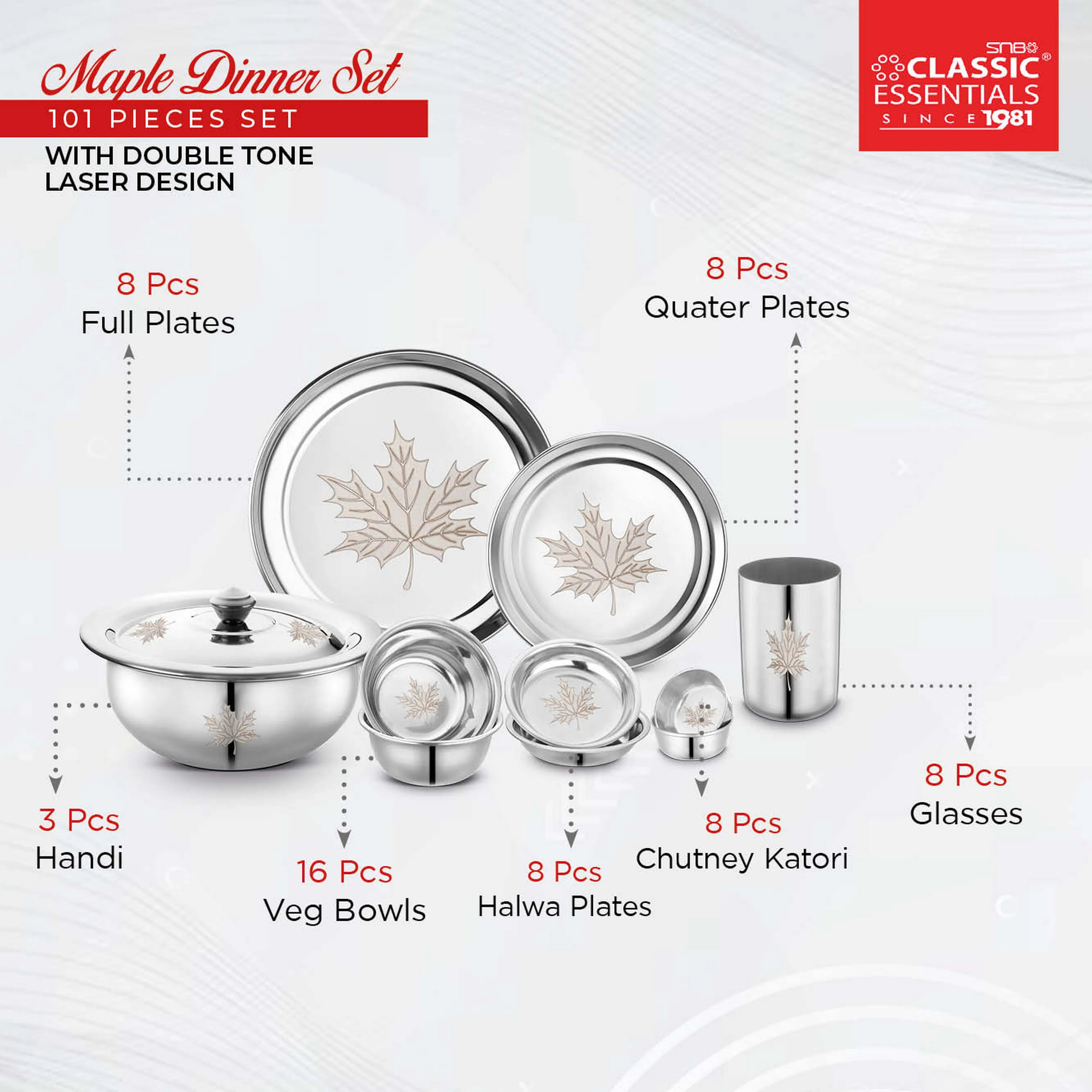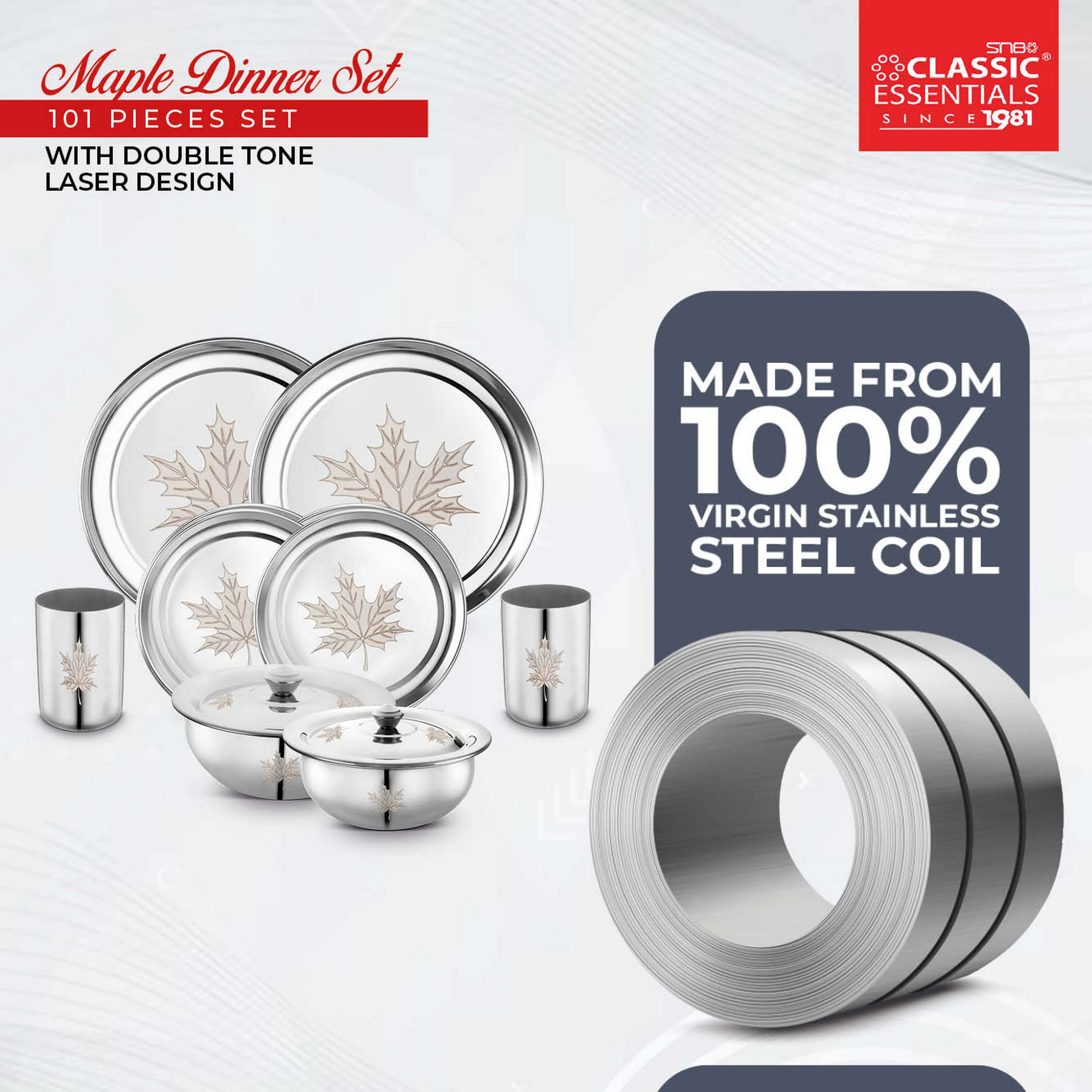 - Our 101 piece Dinner set is made with the highest-grade steel perfected Since 1981 by SNB Steel.