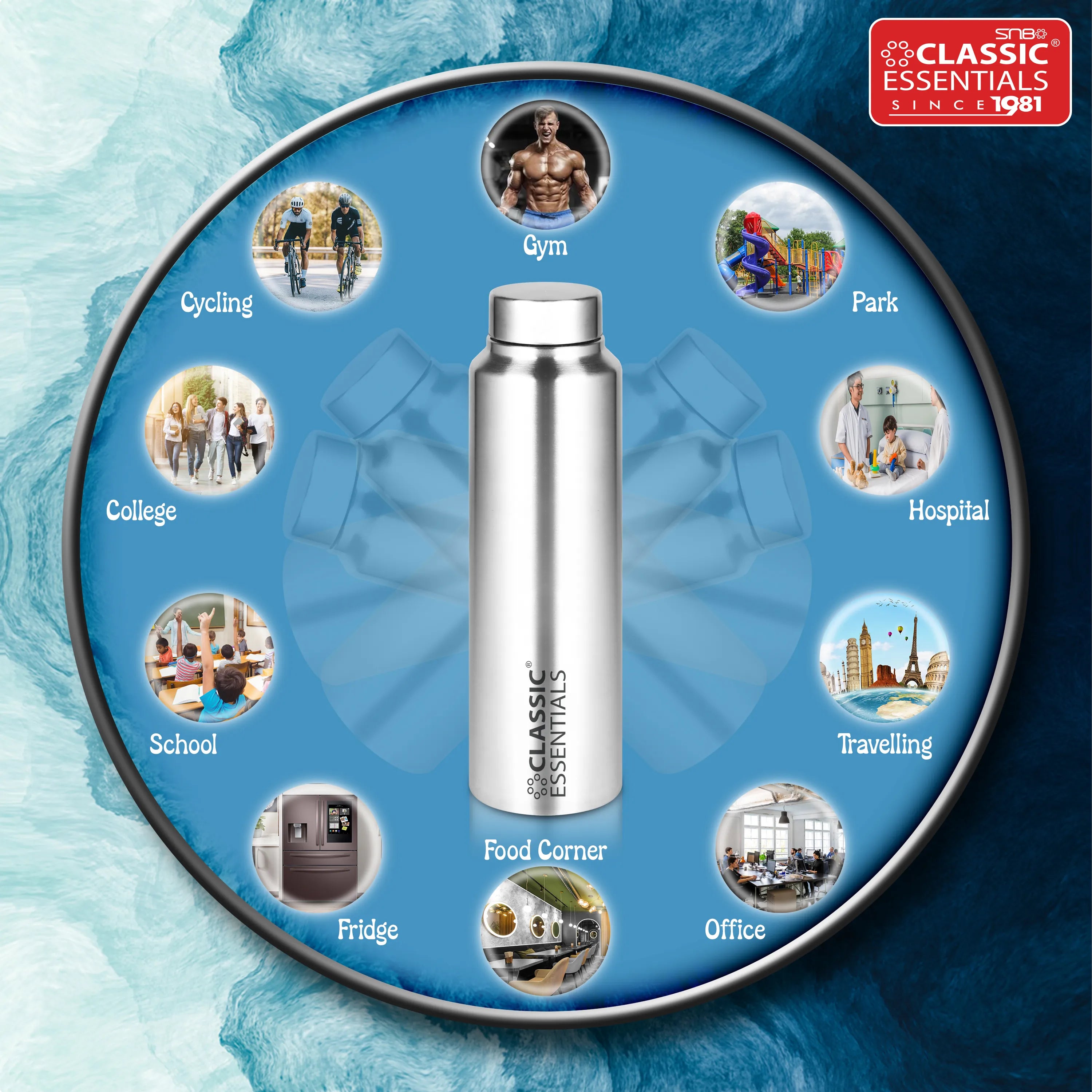 • Classic Essentials Stainless Steel Fridge/Refrigerator Bottle/Thunder is made of high quality stainless steel perfected Since 1981 by SNB Steel.. It has a single wall high quality steel body with Plain design