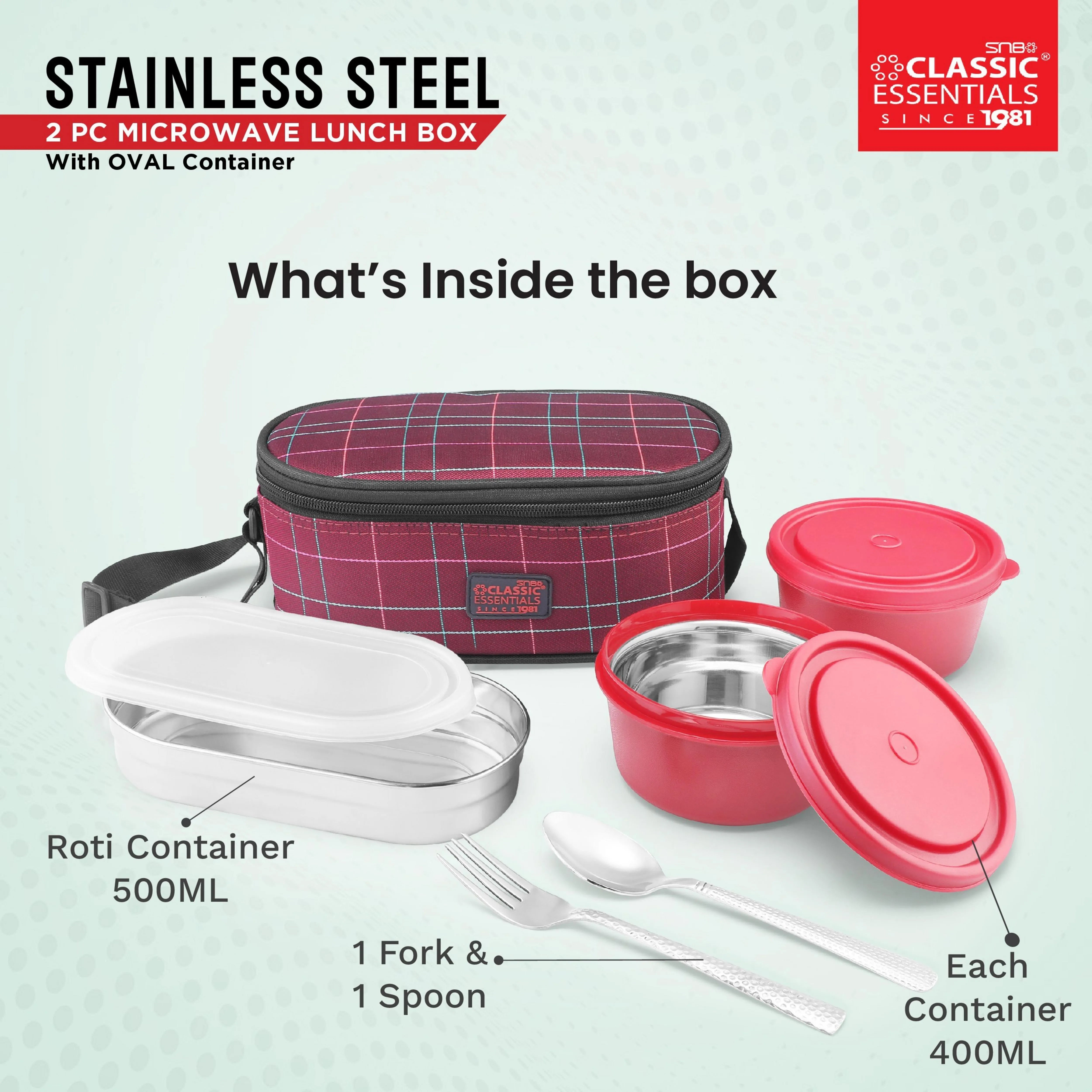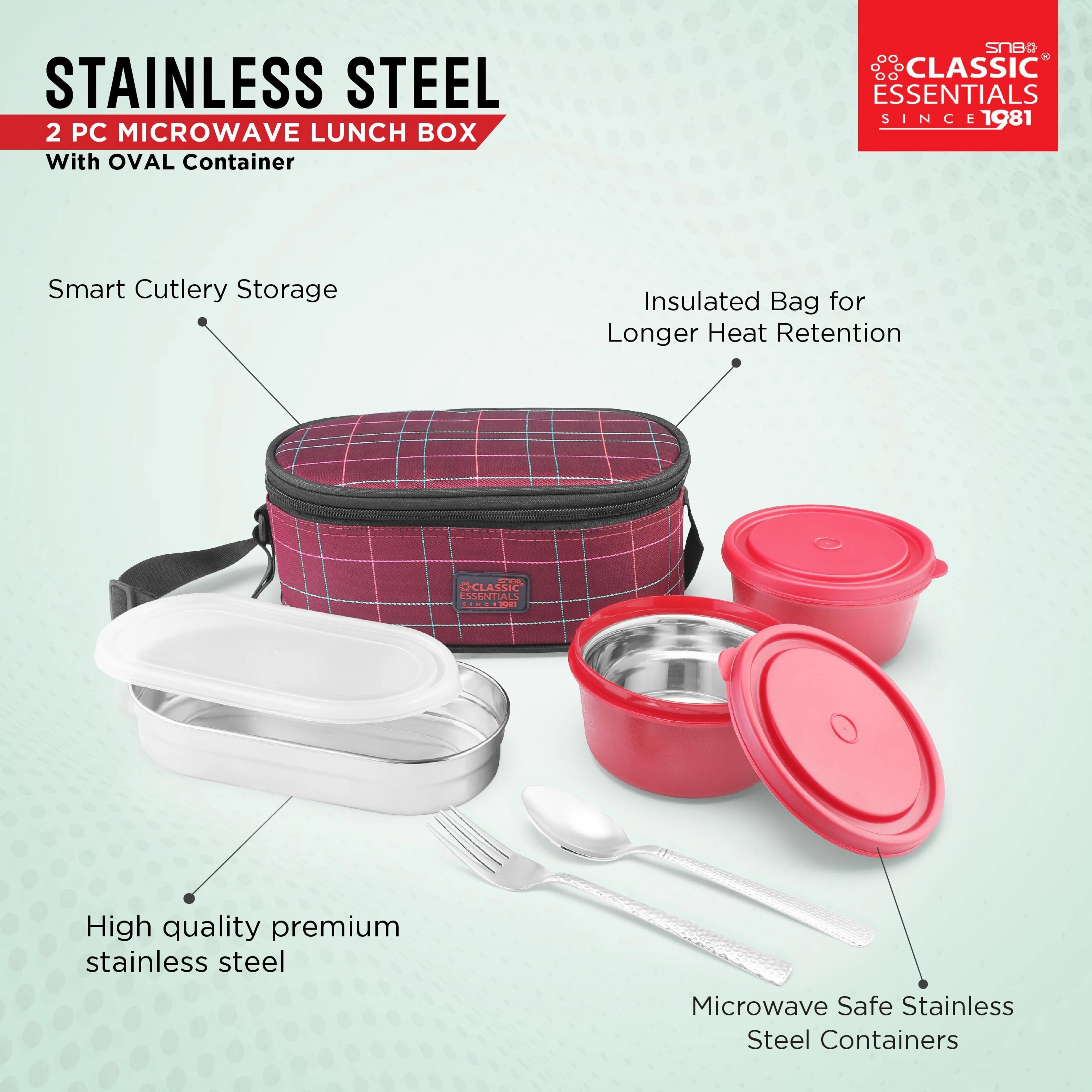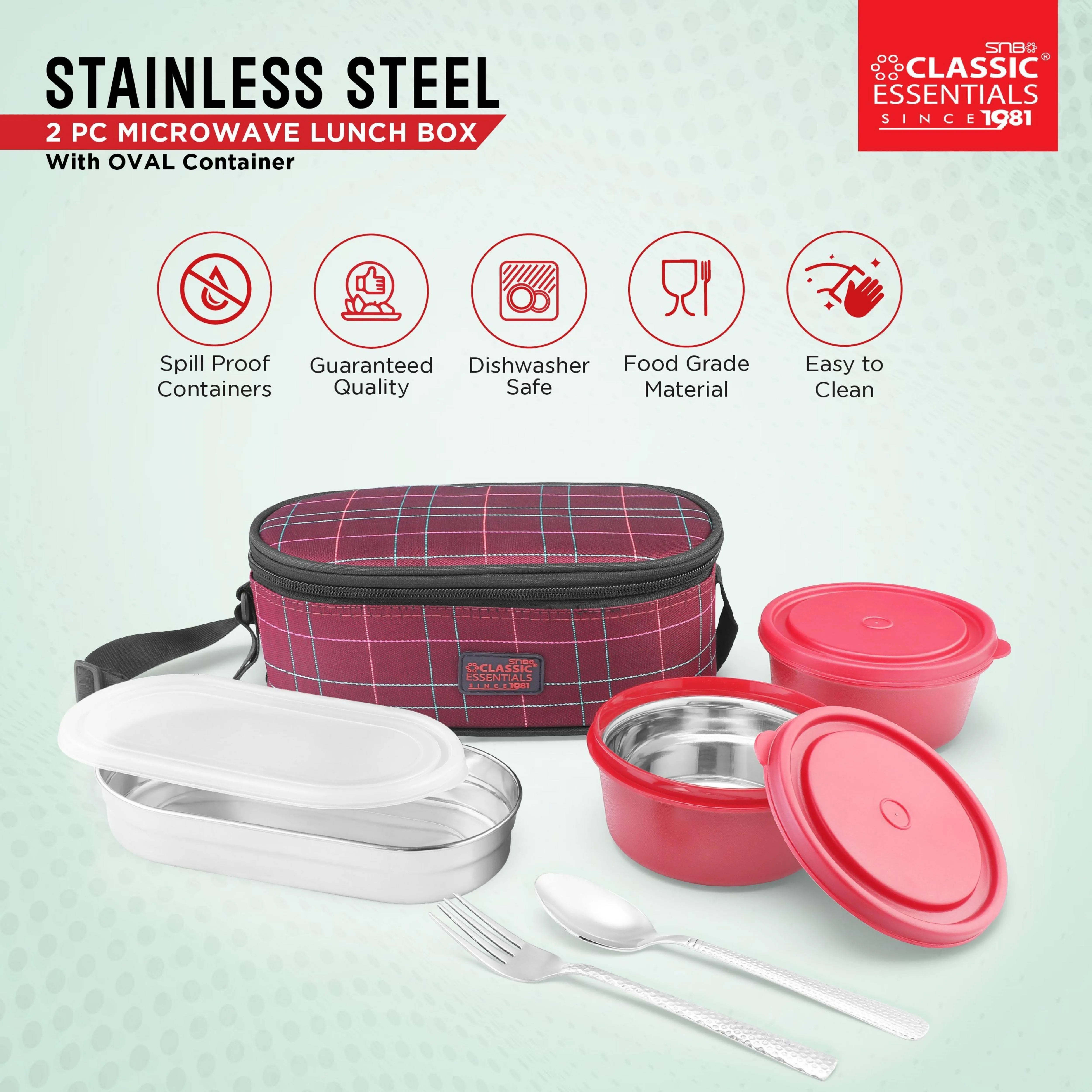 Classic Essentials Stainless Steel Microwave safe, Lunch Box Set with Cutlery, Capacity: 1300ML, Color: Red